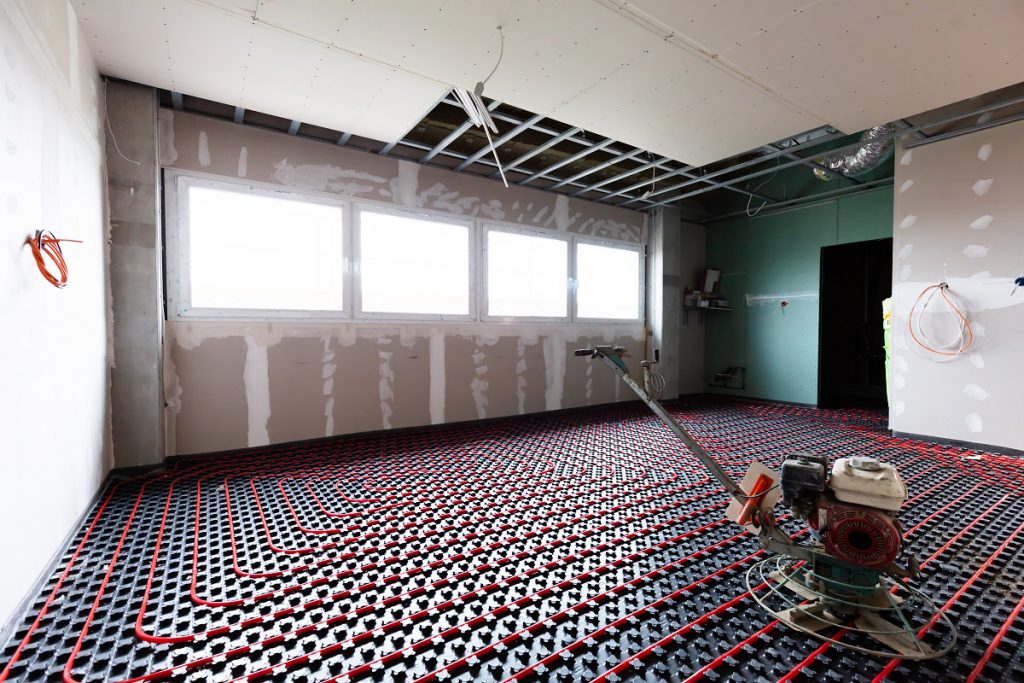 Następnie, podłoże przeznaczone do instalacji ogrzewania powinno zostać osuszone i wyrównane. Dopiero wtedy można rozpocząć montaż rur (obiegów grzewczych), a po zakończeniu tego zadania przeprowadzić próbę ciśnieniową – wykonuje się ją poprzez wlanie do rury wody i zweryfikowanie, czy obieg jest szczelny. Ostatnim krokiem, po montażu szczelin dylatacyjnych i wylewce betonowej, jest nałożenie posadzki na podłogę.